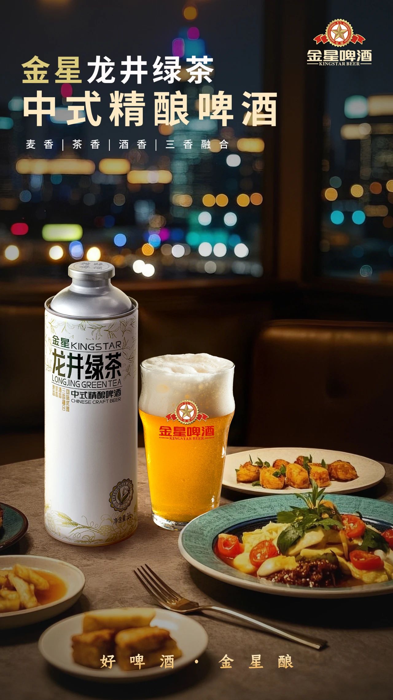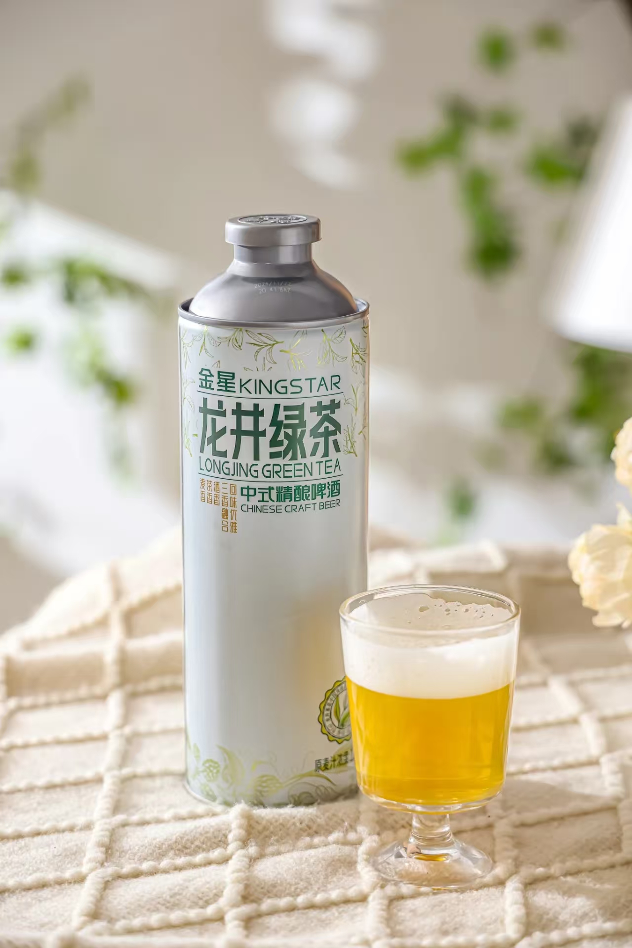 Kingstar 1L*6 Premium Wheat Craft Beer 4.1% Alcohol Longjing Green Tea Flavored High Quality Chinese Ale Can Packaging